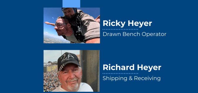 In this edition of our employee highlight series, we spotlight our very own father-and-son duo: Richard Heyer, who works in Shipping & Receiving, and Ricky Heyer, our Draw Bench Operator. We delve into their careers, their passions, and their answers to a few fun questions along the way!